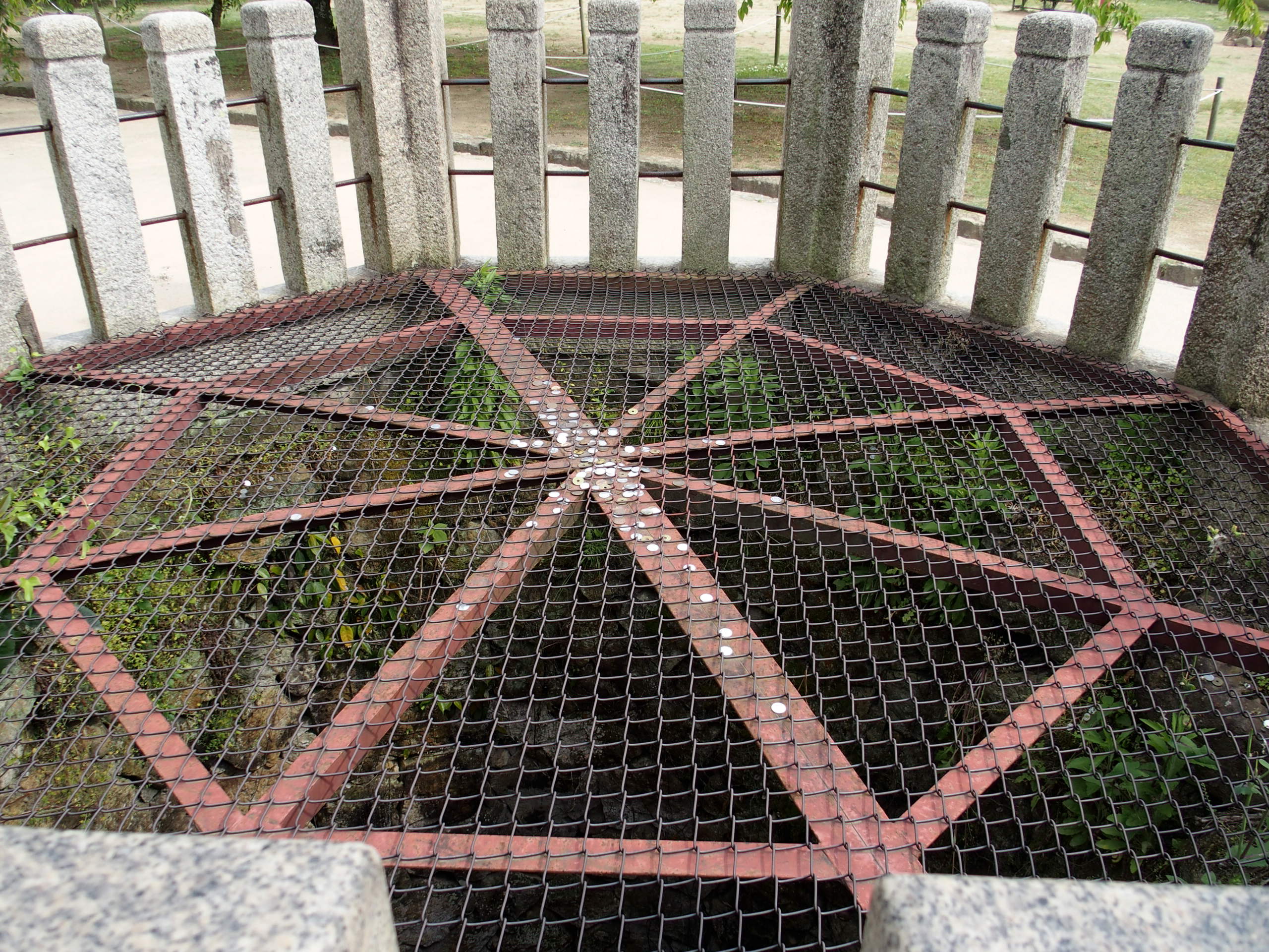 底のほうにも小銭がたくさん積まれていてそれだけ大勢の人がこの井戸を見学したのでしょう。