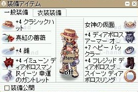 頭装備はデクラシックハットと女神の仮面を使用してます。